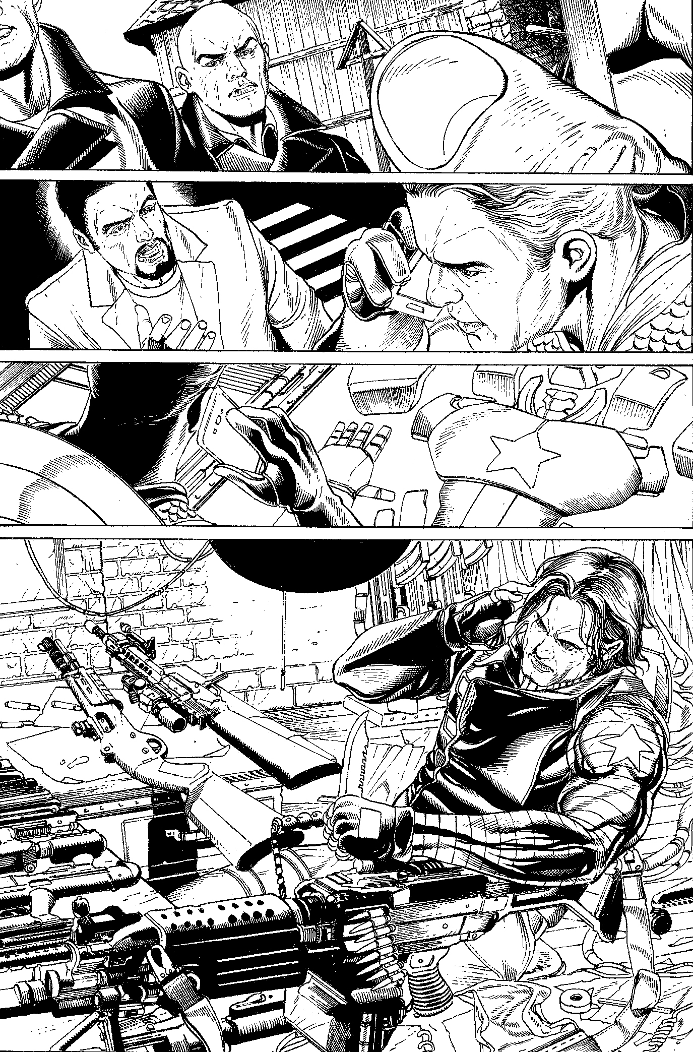Lo cierto es que al principio pensé que desde Marvel solo pretendían que hiciera algunas páginas, es una técnica habitual que un editor encargue diferentes partes de un número a varios artistas. Así que cuando Tom Brevoort me dio el guion de Namor: The Best Defense le pregunté qué páginas quería que hiciera, y entonces él me respondió “todas ellas”. Así que tuve que controlarme y hacerlo lo mejor que pude, y eso funcionó. Debió gustarles el resultado ya que después de eso él me pasó a Invasores y trabajar con estos personajes es increíble. Nunca pensé que un día dibujaría al Capitán América, es como hacer a Superman para DC Comics.