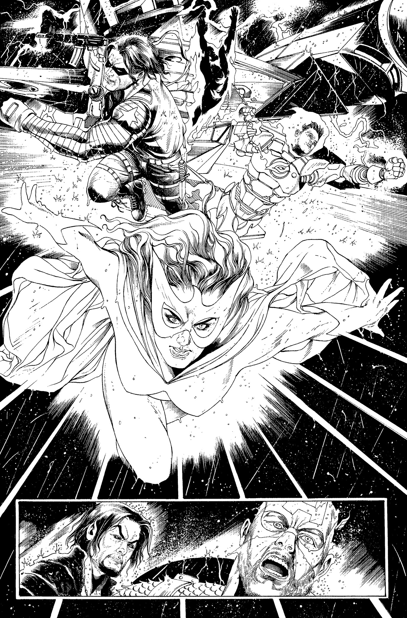Lo mismo que otros muchos artistas, soy de la vieja escuela. Primero leo el guion un par de veces y veo todas las referencias que me harán falta, si hay algo que no puedo encontrar le pido a Alana, asistente de Tom que me proporcione las referencias necesarias, que en su mayoría son sobre los diseños de los personajes. Después trabajo en la disposición de página lo que me lleva dos días, es algo muy simple pero sirve para mostrar cómo se ven los héroes y la línea que seguiré.