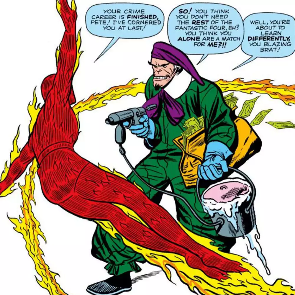 Volvamos al hecho de esta Marvel primigenia, una que busca su lugar, su continuidad, su canon y que experimenta un cómic tras otro. Esto se ve no solo en los héroes que llenan sus páginas y protagonizan sus historias, también en la gran cantidad de villanos de todo tipo que empiezan a ser legión. Algunos de ellos están destinados a ser más que una simple molestia como es el caso del Escarabajo, que más tarde pasaría a ser más enemigo de Spiderman que de cualquier otro, el Hombre Planta, primero sin su traje, además del siempre excéntrico Pete Pote de Pasta y el avieso Mago que está destinado a ser uno de los grandes oponentes de los Cuatro Fantásticos.