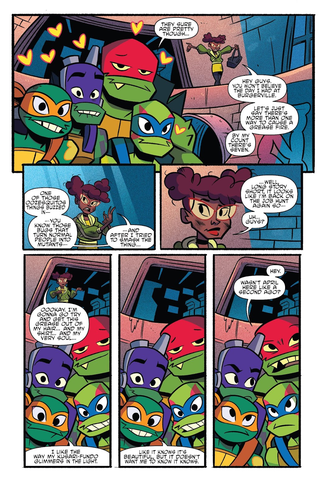 Este primer volumen de El ascenso de las Tortugas Ninja se define, en la página de ECC, como “en una serie completamente nueva: nuevos personajes, nuevas actitudes y una nueva era de locura mutante da comienzo aquí.”, y lo es. Da lo que promete, entretiene, divierte y logra que incluso los adultos que hemos visto pasar todas las versiones de estos personajes leamos con interés cada una de las páginas.