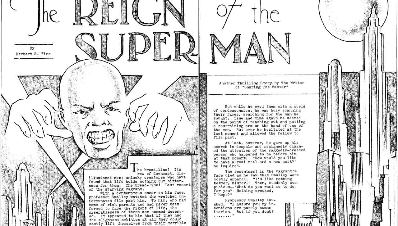 Jerry Siegel y Joe Shuster son los padres del personaje. Se conocieron en el Glenville High School de Cleveland y empezaron a trabajar juntos. Su primera obra en conjunto fue para el fanzine Science Fiction: The Advance Guard of Future Civilization que el mismo Siegel creó. Se trata de un relato titulado The Reign of the Superman, en el que el científico Ernest Smalley contrata a un vagabundo, Bill Dunn, para probar con él un suero experimental de su invención a cambio de comida y un traje nuevo.