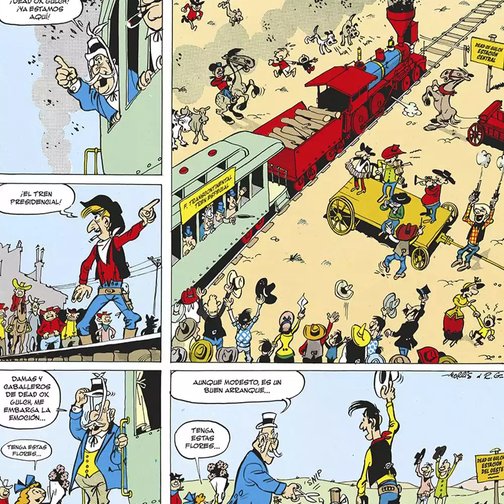 Como el propio título del tomo ya indica, es el primero de un total de ocho volúmenes donde Norma recopilará toda la etapa en la que estuvieron juntos René Goscinny y Morris (desde 1955 hasta 1977). En dicho periodo de tiempo el primero (creador junto con Albert Uderzo de otro clásico del cómic como Astérix) se hizo cargo de los guiones para que entonces el segundo (creador y dibujante del personaje) se dedicara tan solo al apartado gráfico.