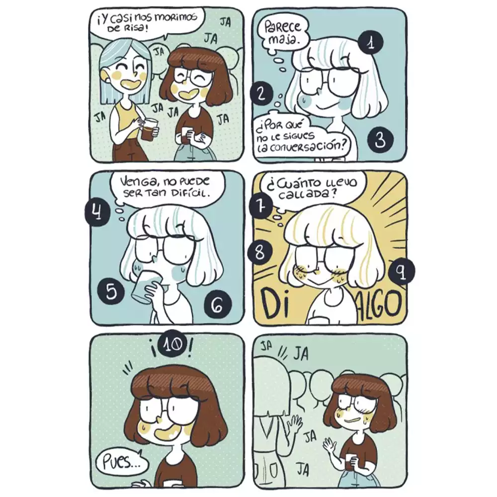 Este es un cómic, una serie de viñetas bastante independientes, que es estupendo que esté en el mercado. Los problemas de tipo psicológico deben dejar de ser un tabú y poco a poco es así pero todavía queda trabajo por hacer. Toda ayuda es poca y el cómic, como medio visual que es, puede llegar a miles y miles de personas. No, es poco probable que Me das ansiedad haga que nadie sane (esto no funciona así) pero sí hará que muchos vean que no están solos, que hay otras personas pasando por lo mismo y eso es mucho, de verdad que sí.