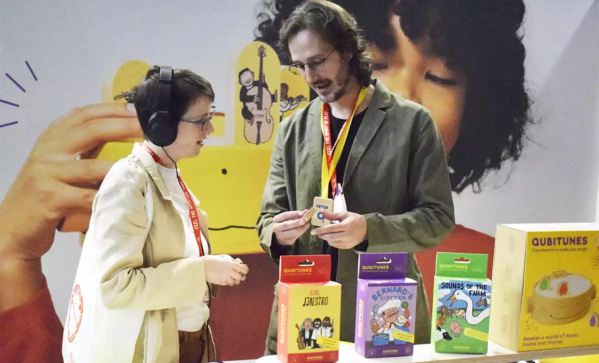 Qubitunes es la novedad de Qubs para esta edición de la Spielwarenmesse y a nosotros nos llamó la atención desde su presentación en los Toy Pitch, así que nos acercamos a su stand para saber más. Y acertamos de lleno con nuestro instinto: Qubitunes bien le valió un Toy Award, premio del juguete, 2025 en la categoría de Startup.